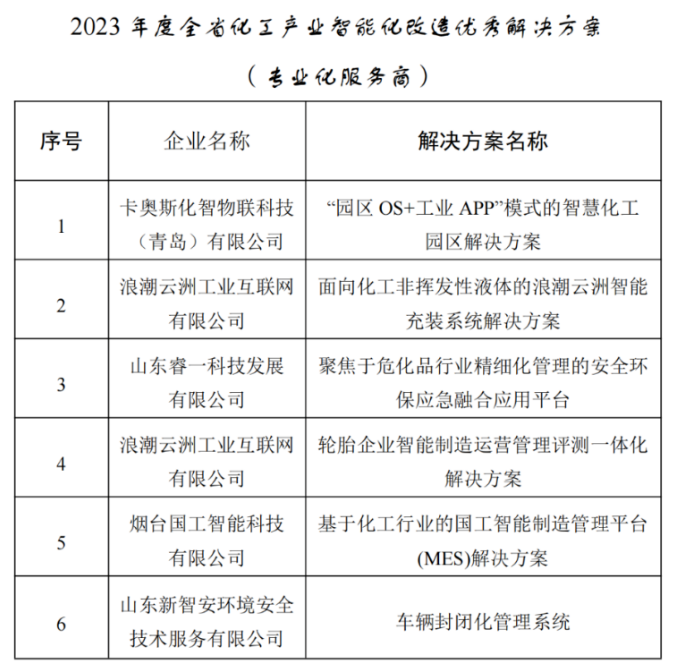 根據(jù)《關于組織開展2023年度化工產(chǎn)業(yè)智能化改造優(yōu)秀解決方案遴選工作的通知》(魯化安轉(zhuǎn)辦〔2023〕28號)要求,省化工專項行動辦組織開展了2023年全省化工產(chǎn)業(yè)智能化改造優(yōu)秀解決方案遴選工作。經(jīng)自愿申報、各市推薦、專家評審等程序,擬確定2023年全省化工產(chǎn)業(yè)智能化改造優(yōu)秀解決方案服務商,現(xiàn)予以公示。國工智能榮幸的被評選為2023 年度全省化工產(chǎn)業(yè)智能化改造優(yōu)秀解決方案專業(yè)服務商。