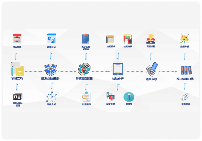 建立標準的研發(fā)管理流程MAI-DEV以數(shù)據(jù)大腦為引擎,建立標準的研發(fā)管理流程,通過對項目立項、項目計劃、科研任務(wù)、開題、實驗記錄、項目結(jié)題為核心的項目節(jié)點的監(jiān)督執(zhí)行,完成對整個研發(fā)項目生命周期的管理。 結(jié)合MAI-CLI的自我學(xué)習能力,實現(xiàn)化合物的逆向推導(dǎo)、目標分子的收率優(yōu)化,在推動科研效率的同時,幫助企業(yè)搭建智能化研發(fā)管理平臺,為企業(yè)核心競爭力賦能。